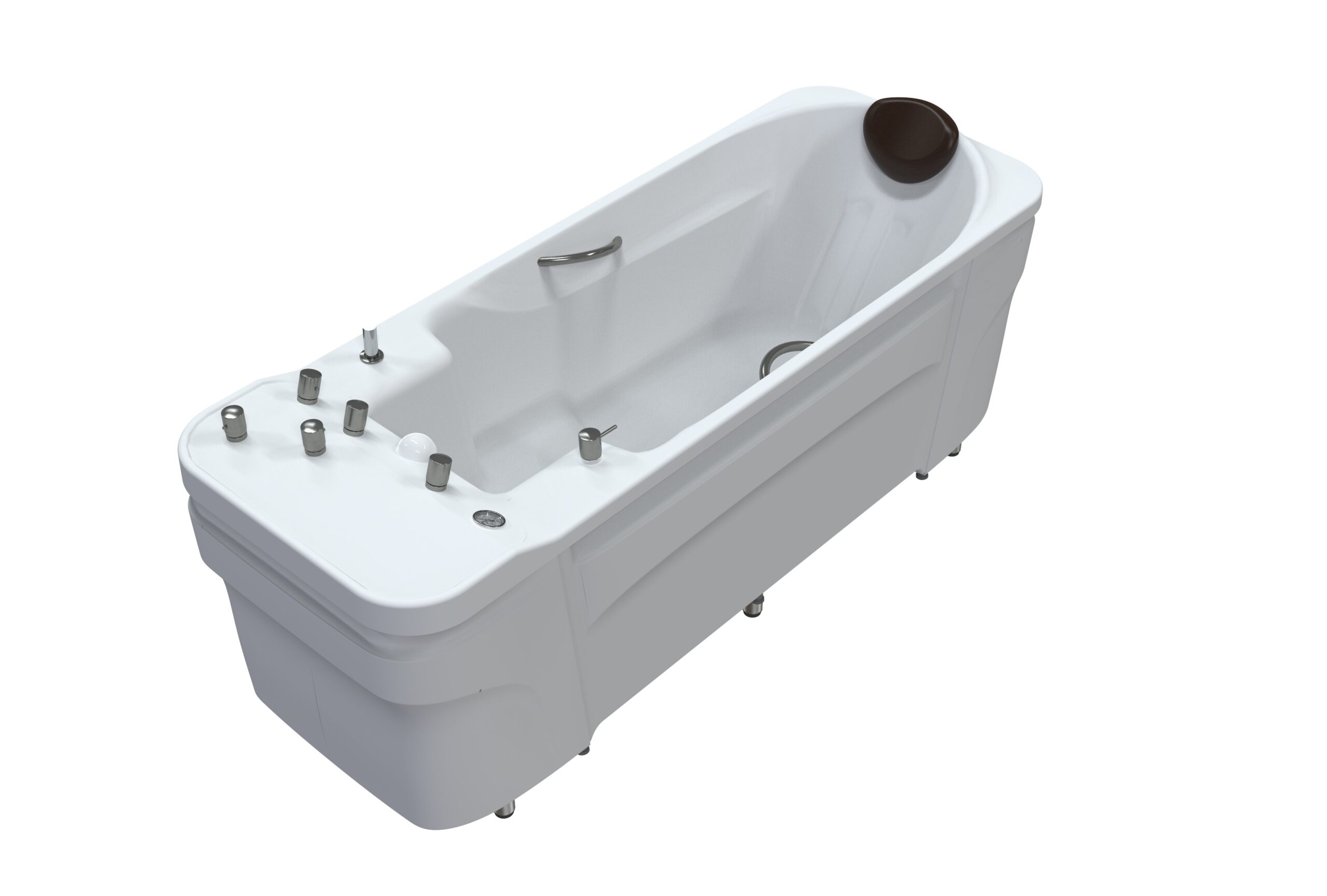 - Комфорт. Правильное погружение пациента (до уровня сердца) — залог безопасности и эффективности. Эргономичный дизайн и съемный подголовник обеспечивают точное и удобное положение тела. Двухступенчатая подставка делает процедуру безопасной для пациентов с ограниченной подвижностью